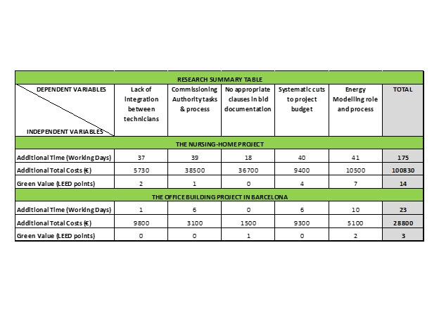 A new methodology was created in order to analyze the projects and evaluate the effects of detected project-management issues under three different points of view: costs, time and building sustainability. Such “issues” were identified by researchers on the basis of the LEAN-definition of “waste”. The scope of the research is to demonstrate a positive relationship between integration of the process green-building tasks and successful development of green-building projects within the European construction environment. The results showed that integration of green-building tasks through the development of the design process can considerably affect the cost, schedule and sustainability of the project design.